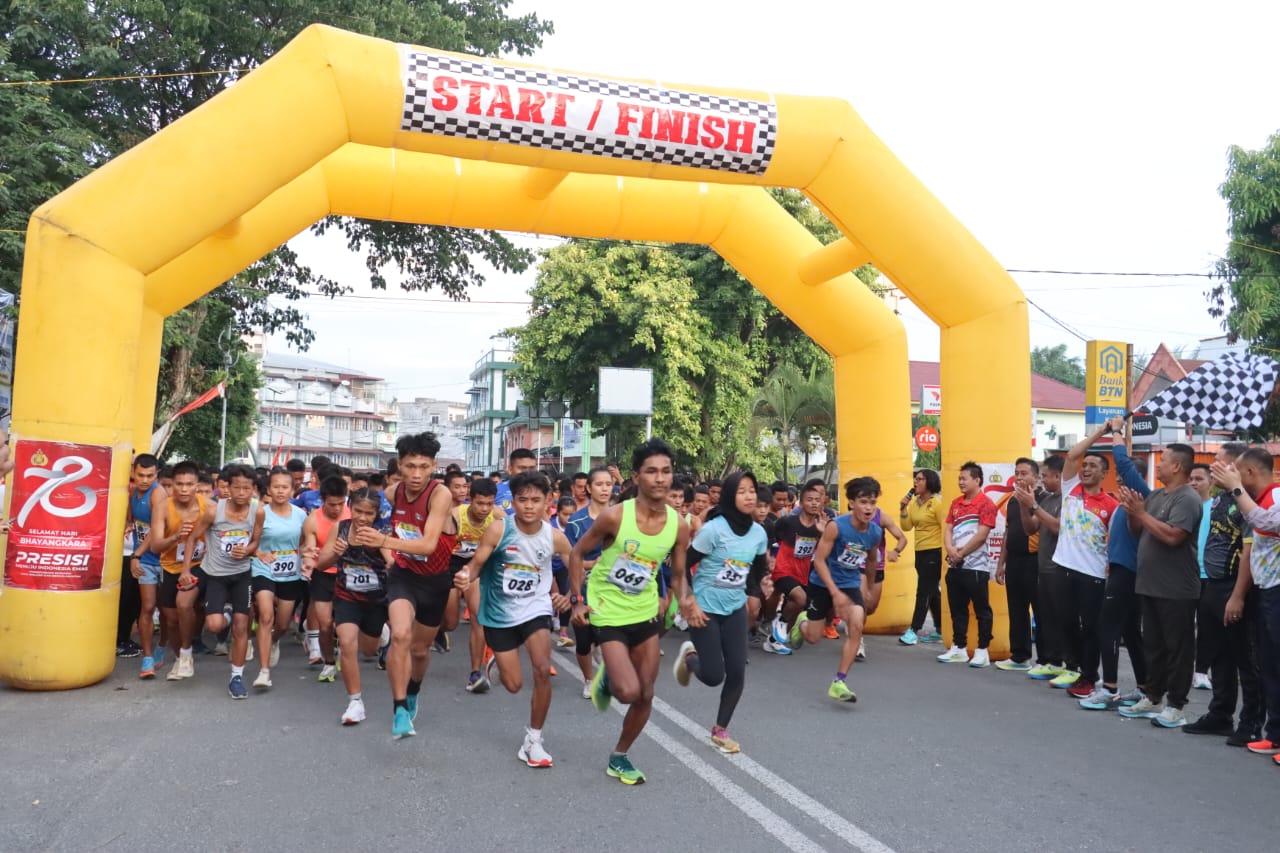 Tebing Tinggi - Untuk memeriahkan HUT Bhayangkara ke 78 yang sebentar lagi, Polres Tebing Tinggi menyelenggarakan perlombaan cabang olahraga run 5 kilometer dan 10 kilometer, bertempat di lapangan Merdeka Jalan Sutomo Kota Tebing Tinggi, Minggu (30/06/24).Hadir dalam kegiatan Pj Walikota Dr Moetaqqien Hasrimi,SSTP,MSi, Kapolres Tebing Tinggi AKBP Andreas Tampubolon, Danyon B Sat Brimob Kompol Bima Anggalaksana, Dansub Denpom Tebing Tinggi Kapten Burdin Nasution, Danramil 13/TT Kapten Yudi