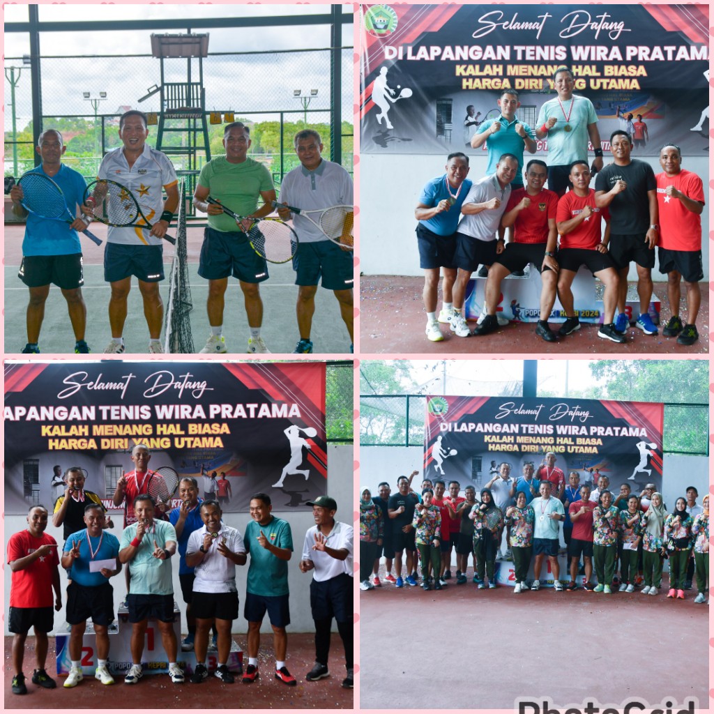 Tanjungpinang - Komandan Korem 033/Wira Pratama Brigjen TNI Jimmy Watuseke berpasangan dengan Kpt Inf J. Rambe keluar sebagai juara dalam gelaran perlombaan pertandingan Tenis Lapangan antar Perwira Korem 033/WP di Lapangan Tenis Indoor Makorem 033/WP, Jalan Sei Timun Km 14 Kecamatan Air Raja Kota Tanjungpinang, Jumat (02/08/2024) Komandan Korem 033/WP dalam arahannya kepada peserta pertandingan Tenis Lapangan menyampaikan agar kegiatan ini jangan dijadikan sebagai rutinitas saja tapi