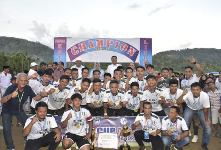 Madina - Wakil Bupati Mandailing Natal (Madina) Atika Azmi Utammi menyaksikan pertandingan final sepak bola antara Anduring Singengu vs Manja FC di lapangan Manja, Pasar Kotanopan, Minggu sore (04/02/2024).Pertandingan kedua kesebelasan ini memperebutkan piala NNB Cup-I Lingkungan I Kelurahan Pasar Kotanopan, Kecamatan Kotanopan.Tim Anduring FC Singengu di babak final berhasil mengalahkan kesebelasan Manja FC Pasar Kotanopan melalui drama adu pinalti 4-2 . Kedua tim bermain imbang tanpa gol di