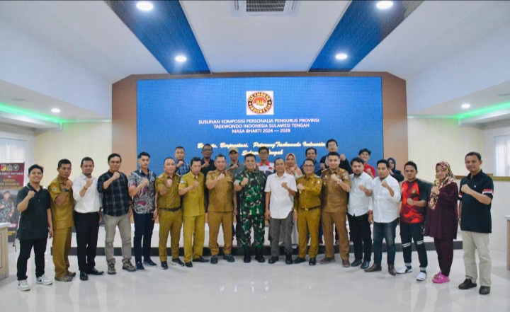 Palu - Optimis atlet Taekwondo Indonesia Sulawesi Tengah mampu meraih prestasi di tingkat Nasional maupun Internasional. Hal itu diutarakan Danrem 132/Tdl, Brigjen TNI Dody Triwinarto, S.I.P., M.Han.,selaku Ketua Taekwondo Indonesia Sulawesi Tengah saat menggelar rapat susunan komposisi personalia pengurus Taekwondo Indonesia Sulawesi Tengah masa Bhakti 2024-2028, yang berlangsung di Ruang Puskodal Songgolangi Makorem 132/Tdl, Kota Palu, Senin (4/3/2024). “Tentunya melalui