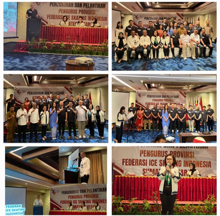 Medan - Pengurus Provinsi (Pengprov) Federasi Ice Skating Indonesia (FISI) Sumatera Utara (Sumut) resmi dibentuk dan dilantik langsung oleh Ketua Umum (Ketum) FISI, Suzan Herawaty.Pelantikan pengurus FISI Sumut yang diketuai Tjhin Seng Huat digelar di Grand Mercure Maha Cipta Medan Angkasa, Jalan Sutomo, Kecamatan Medan Timur, Kota Medan, Selasa (19/3/2024).Dalam sambutannya, Ketum FISI Suzan Herawaty mengatakan hadirnya FISI Sumut menjadi wadah bertujuan untuk menghimpun bibit atlet berbakat