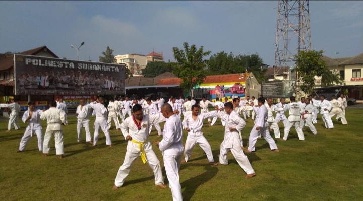 Surakarta - Polresta Surakarta menggelar kegiatan Pelatihan dan Ujian Beladiri Polri Periodik I tahun anggaran 2024. Pelatihan dan Ujian Beladiri Polri dilaksanakan di halaman Mapolresta Surakarta, Kamis (29/02/2024).Kapolresta Surakarta Kombes.Pol. Iwan Saktiadi, SIK.MH.MSi melalui Kabag SDM Kompol Riyadi Supriyadi, SIP.MH berpesan kepada para peserta, agar dilaksanakan secara maksimal untuk mendapatkan manfaat dari Pelatihan dan Ujian Beladiri Polri.“Laksanakan dengan maksimal,