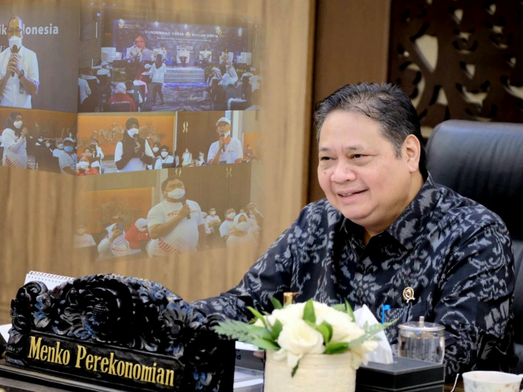 Bandung - Menteri Koordinator Bidang Perekonomian Airlangga Hartarto mengadakan dialog secara virtual dengan para pelaku UMKM di Kota Bandung, Jawa Barat, Selasa (15/03/2022).