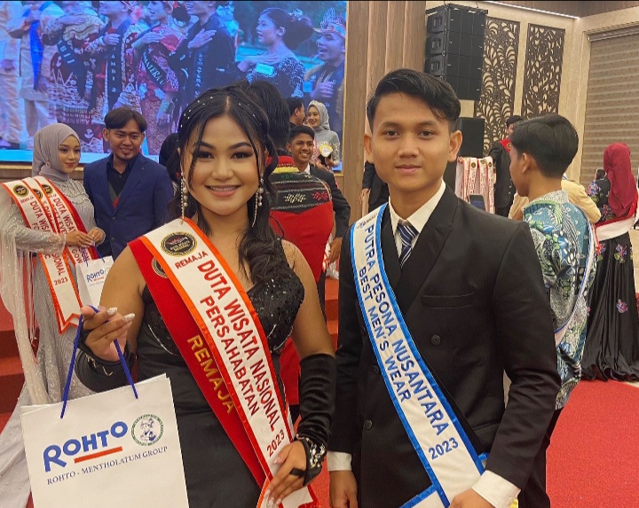 Bangka Selatan - Akifah Naylah dan Effal Alando Pratama W, merupakan talent Rumah Pelangi Entertainment ini berhasil meraih juara Duta Wisata Nasional Remaja Persahabatan dan Putera Pesona Nusantara Best Menswear tahun 2023.Effal menceritakan pengalamannya mengikuti ajang pemilihan ini, mulai dari persiapan, pendaftaran hingga malam grand final.“Banyak persiapan yang saya lakukan untuk mengikuti ajang ini, seperti memperkuat wawasan mengenai pariwisata, public speaking, catwalk,