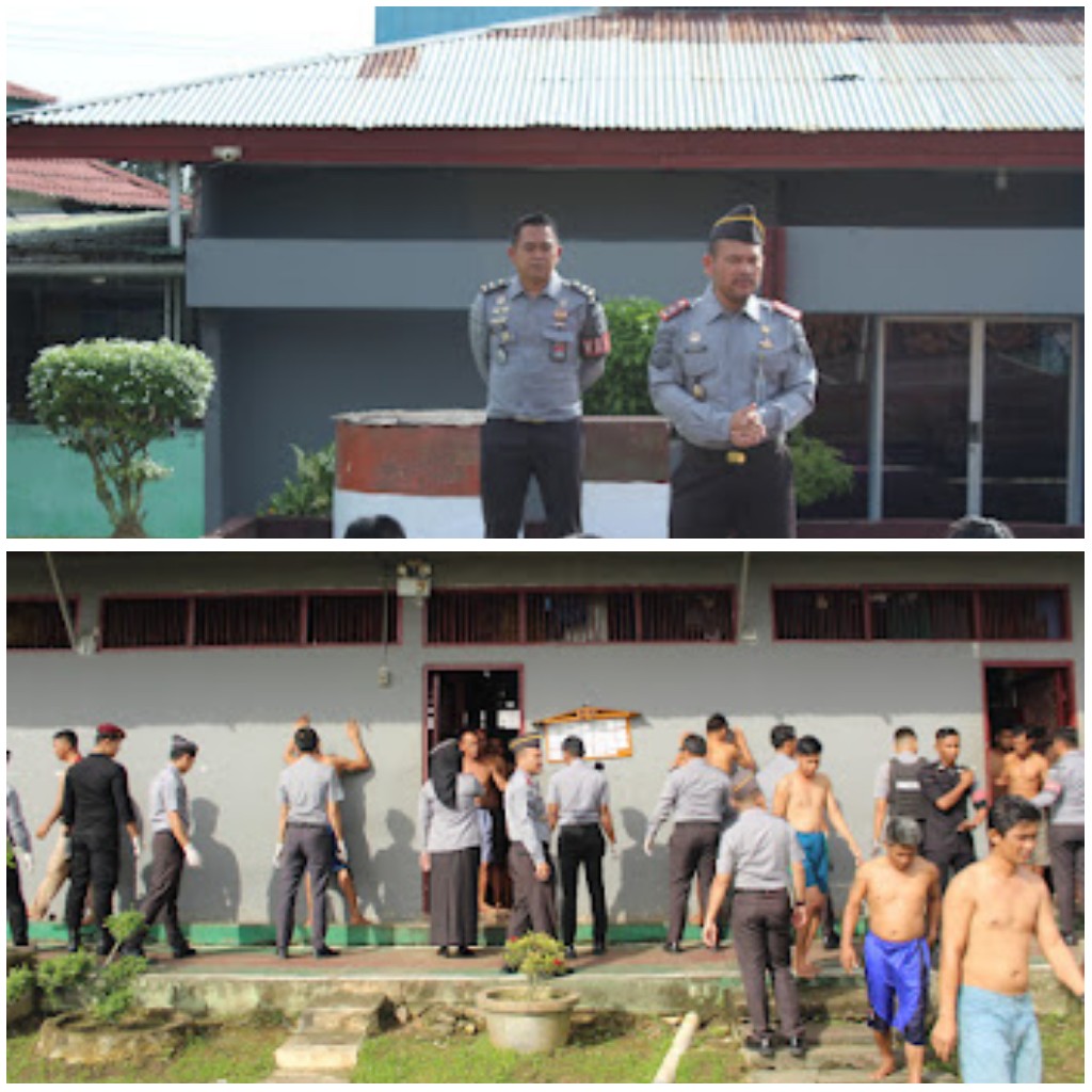 Inhu - Menyambut perayaan Natal dan tahun baru (Nataru), Rumah Tahanan Negara (Rutan) Kelas IIB Rengat, Kabupaten Indragiri Hulu (Inhu), Riau menggelar razia blok hunian warga binaan pada Selasa (24/12). Razia ini dilaksanakan dalam upaya mencegah gangguan keamanan dan ketertiban (kamtib) serta menjaga kondisi rutan tetap berlangsung aman dan kondusif. Razia kamar hunian warga binaan ini merupakan tindak lanjut dari surat edaran Plt. Direktur Jenderal Pemasyarakatan mengenai peningkatan