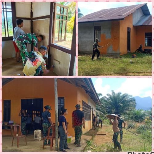 Peduli Rumah Ibadah, Dansatgas TMMD Ke 121 Kodim 1210 Landak Laksanakan Pengecatan Gereja GKSI Engkangin