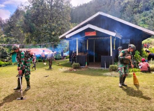 Satgas Yonif 323 Buaya Putih Bersama Masyarakat Bersihkan Rumah Ibadah