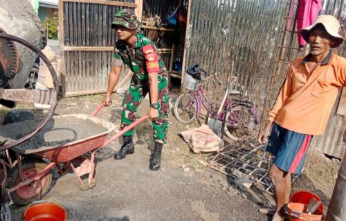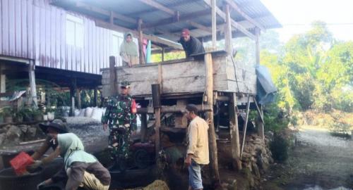 Wujudkan Kemanunggalan TNI, Babinsa Desa Kalangan Bantu Warga Bangun Rumah