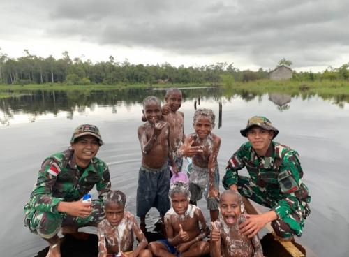 Satgas Yonif 125/SMB Didik Anak-Anak Papua Belajar Arti Menjaga Kebersihan Sejak Dini