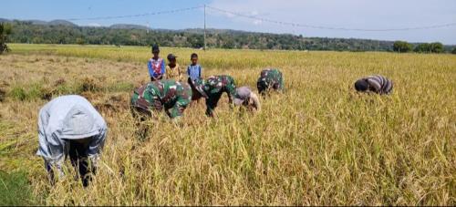 Satgas Yonkav 6/Naga Karimata Bantu Panen Padi di Sawah Warga