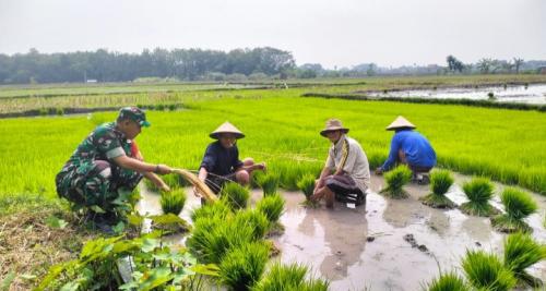 Babinsa Menjadi Mitra Terpercaya dalam Membantu Tanam Padi untuk Kesejahteraan Petani Desa Wonotolo