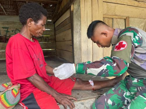 Satgas Yonif 122/TS Berikan Penanganan Pertama Kepada Warga yang Sakit