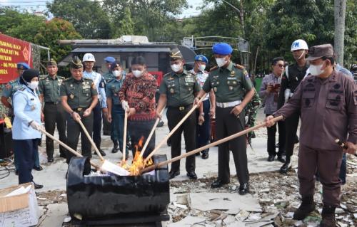 Pangdam Tanjungpura Bersama Orjen TNI Musnahkan Barang Bukti Sabu 21,028 Kg di Otmil II-06 Pontianak