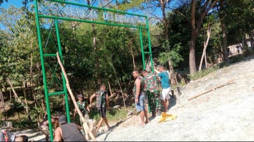Perindah Gereja Berbatasan, Pos Oelbinose Satgas Yonkav 6/Naga Karimata Bangun Gapura Gereja