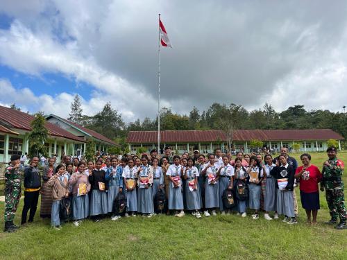 Satgas Yonkav 6/Naga Karimata Berikan Tas untuk Peraih Prestasi Siswa di Perbatasan