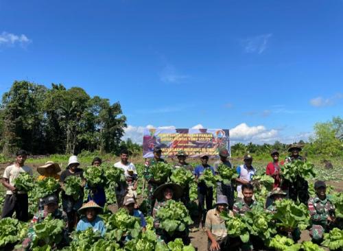 Personil Satgas Yonif 122/TS Pos Yamara Panen Sayuran Bersama Warga Distrik Arso Timur
