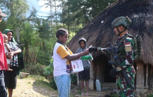 Satgas 323 Buaya Putih Bagikan Sembako Kepada Warga Honai