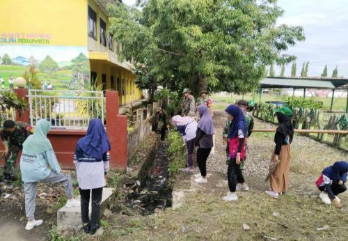 Danposramil Pattallasang Bersama Pelajar dan Masyarakat Melaksanakan Kebersihan Lingkungan
