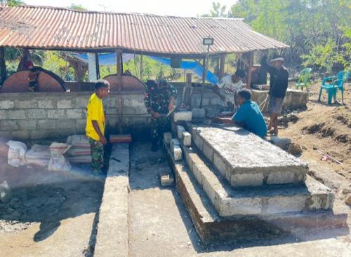 Pos Aplal Satgas Yonkav 6/Naga Karimata Berikan Bantuan untuk Renovasi Makam