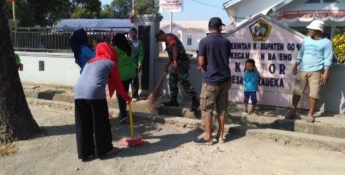 Babinsa Koramil 1409-06 Bajeng Bersama Warga Laksanakan Kerja Bakti Bersihkan Lingkungan