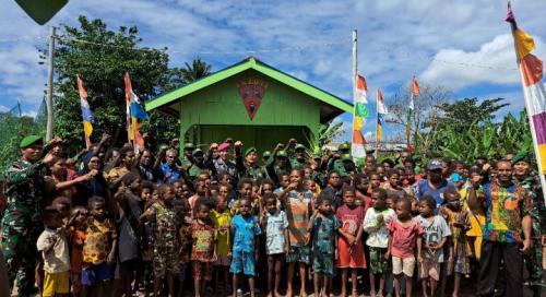 Satgas Yonif 125/SMB Bangun Pos Kamling Ke-4 di Distrik Ilwayab