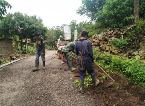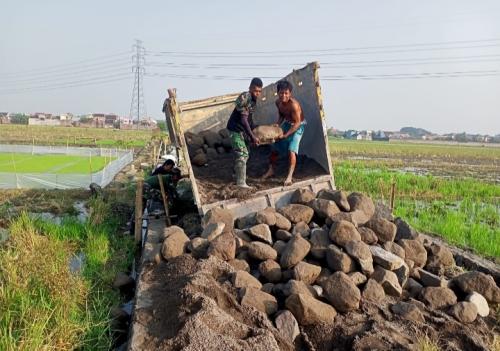 Bersama Masyarakat Babinsa Laksanakan Karya Bakti Bersihkan Lingkungan