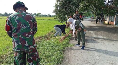 Personil Koramil 1409-06/Bajeng Laksanakan Karya Bakti Pembersihan Lingkungan