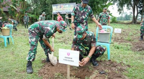 Bersatu dengan Alam, Kodim 1409/Gowa Tanam Pohon Serentak yang Pimpin Kasad TNI Melalui Vidcon
