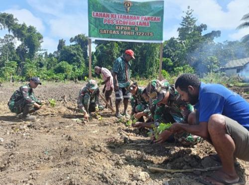 Manfaatkan Lahan Kosong, Satgas Yonif 122/TS Berikan Edukasi Cara Bercocok Tanam Kepada Masyarakat