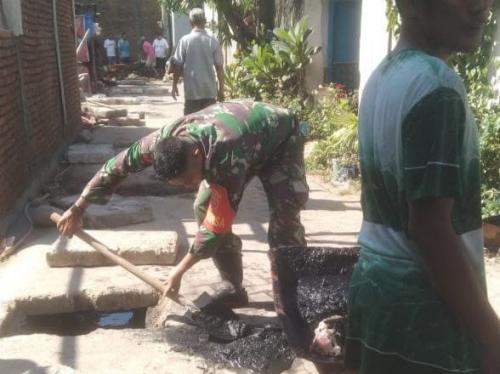 Bersama Warga, Babinsa Gotong Royong Bangun Talud Irigasi