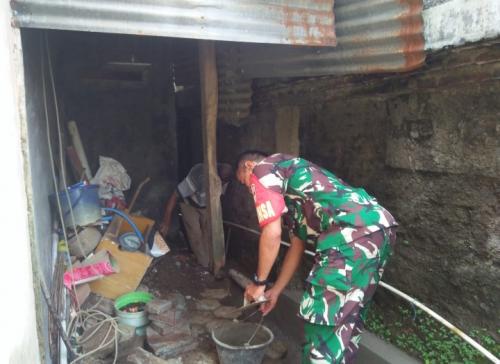Peduli Kebersihan Lingkungan, Babinsa Bantu Pembuatan Saluran Air