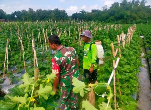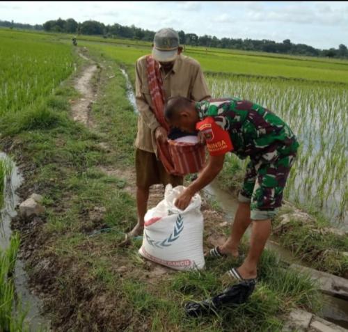 Babinsa Turun Langsung Kesawah Dampingi Petani Mengecek Pertumbuhan Tanaman Padi