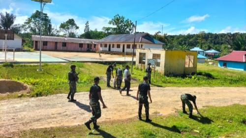 Upaya Satgas Yonif 623 Karya Bakti Bersihkan Jalan Kampung