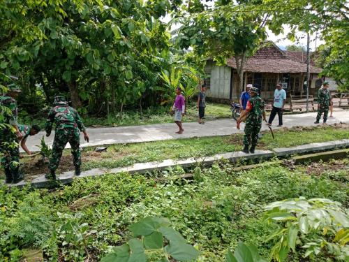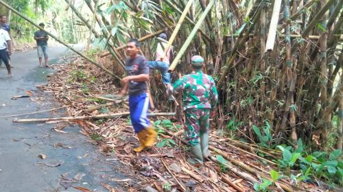 Babinsa Koramil 1003/Tanjungkerta Kodim 0610 Gotong-royong Membersihkan Rerutuhan Bambu
