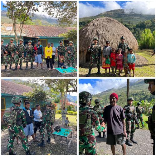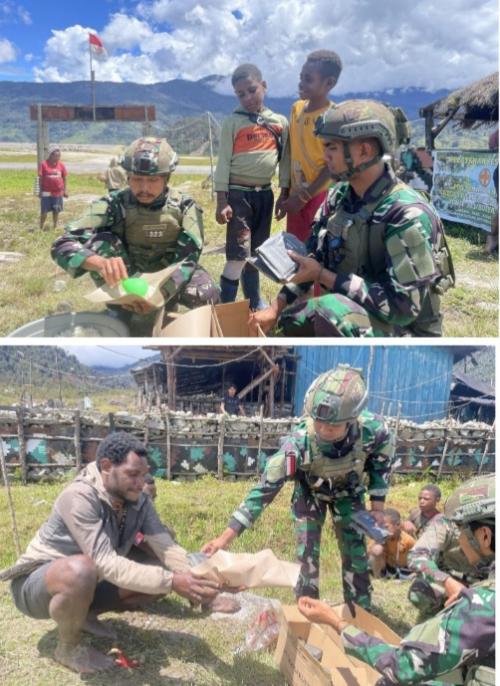 Satgas Yonif 641/Bru Berbagi Sembako di Kampung Polimo Distrik Kurima, Kabupaten Yahukimo