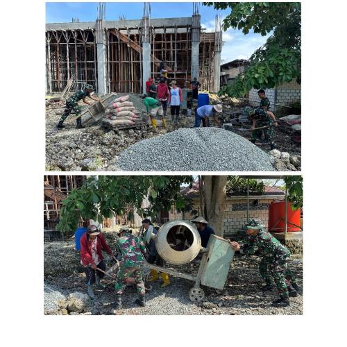 Prajurit Satgas Yonif 131/BRS Bersama Masyarakat Membangun Masjid