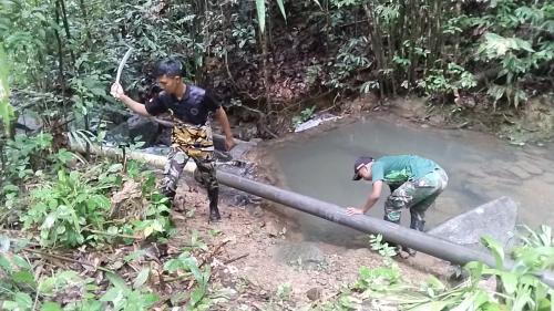 Satgas Pamtas RI-Malaysia Yonzipur 5/ABW Bersama Masyarakat Perbaiki Pipa Air Bersih