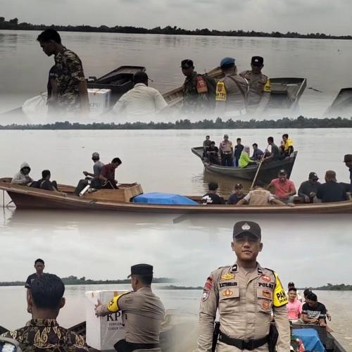 Polsek Tempuling Amankan dan Sukseskan Pilkada Melalui Jalur Perairan dengan Pompong