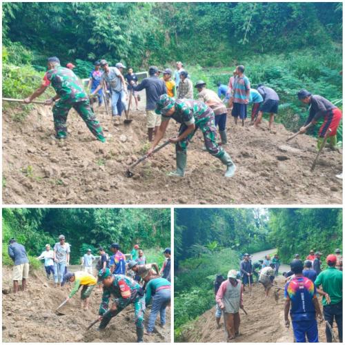 Tiga Babinsa Musuk Terjun Langsung Bantu Warga Bersihkan Longsor