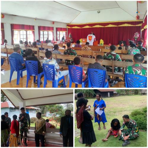 Minggu Penuh Suka Cita, Satgas Yonif 641/Bru Laksanakan Ibadah Bersama Warga di Gereja GKI Distrik Bolakme