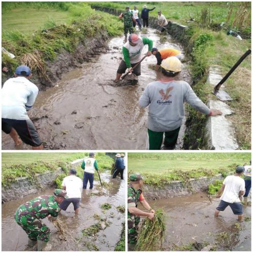 Optimalkan Saluran Irigasi Pertanian, Babinsa Kalipucung Bersama Poktan Tata Tentram Lakukan Kerja Bakti