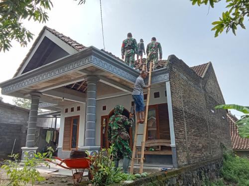 Babinsa Simo Turut Perbaiki Atap Warga yang Rusak