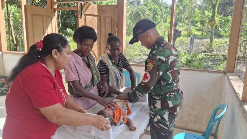Peduli Kesehatan Anak & Balita, Satgas Yonif 131/BRS Bantu Pelayanan Posyandu di Perbatasan Papua