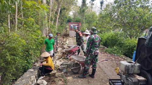 Babinsa Desa Pilangsari Koramil 12/Gesi Kodim 0725/Sragen Turut Bangun Talud Jalan Agar Aliran Air Lancar