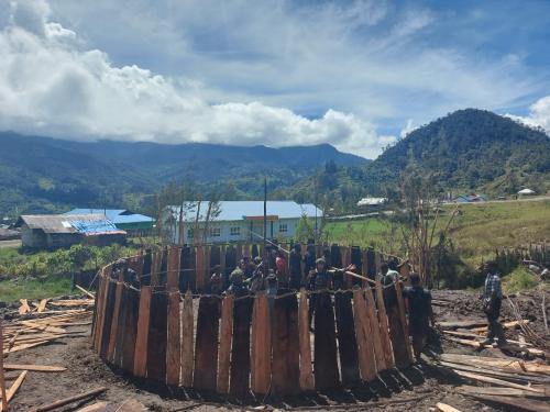 Satgas Yonif 323 Buaya Putih Berkontribusi Bantu Bangun Honai Masyarakat