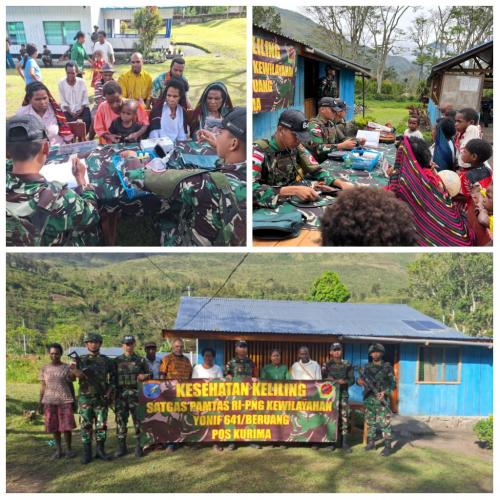 Warga Distrik Kurima Berbondong-Bondong Nikmati Yankes Keliling Gratis yang di Gelar Satgas 641/Bru