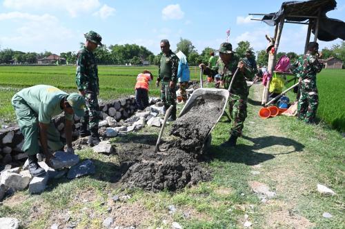 Warga dan Satgas TMMD Kodim 0726/Sukoharjo Lanjutkan Pekerjaan Talud Jalan