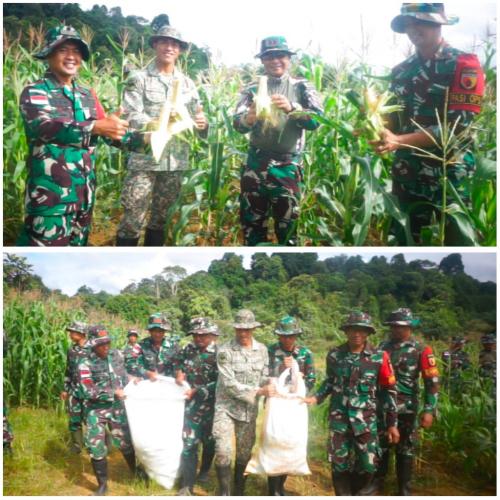 Semangat dan Suka Cita, Satgas Pamtas RI-Malaysia Yonzipur 5/ABW Laksanakan Panen Raya