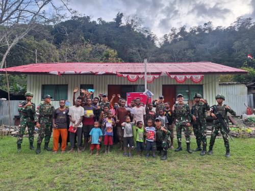 Satgas 641/Bru Tanamkan Wawasan Kebangsaan dan Bagikan Buku Tulis Pada Anak-Anak Papua