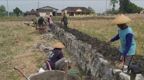 Babinsa Bersama Warga Bangun Talud Irigasi